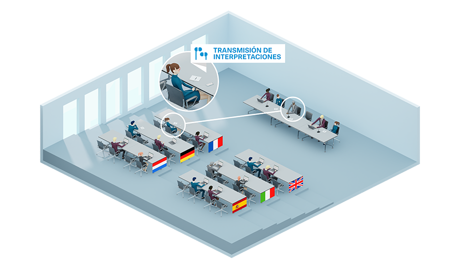 La función de intercomunicación permite a los participantes locales y remotos responder, escuchar e interactuar desde cualquier lugar de la sala.