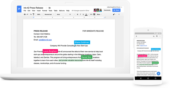 Cree, edite, almacene y comparta documentos, hojas de cálculo y presentaciones en su navegador y en diferentes dispositivos.