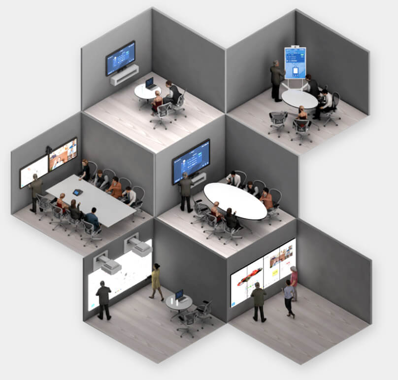 Hoy en día, la sala de reuniones ya no se limita a una simple sala; ahora se ha extendido a aplicaciones que la gente quiere usar mientras viajan en sus teléfonos inteligentes, tabletas y dispositivos personales.